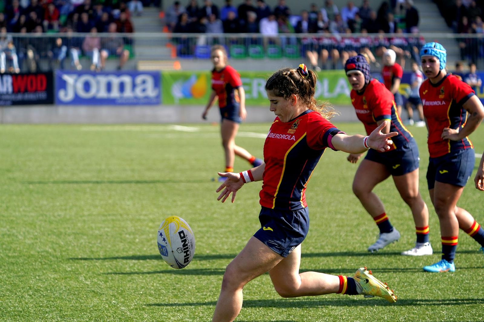 Poco más de un minuto tardó España en lograr el primer ensayo del partido. Clara Piquero posó el balón pegado a la línea lateral derecha para dejar claras las intenciones de Las Leonas. La seriedad e intensidad continuó en las locales, que menos de diez minutos después realizó el segundo ensayo gracias a una gran jugada personal de Claudia Peña, quien ensayó centrado y nítido para la posterior transformación y establecer el 12-0 en el marcador.