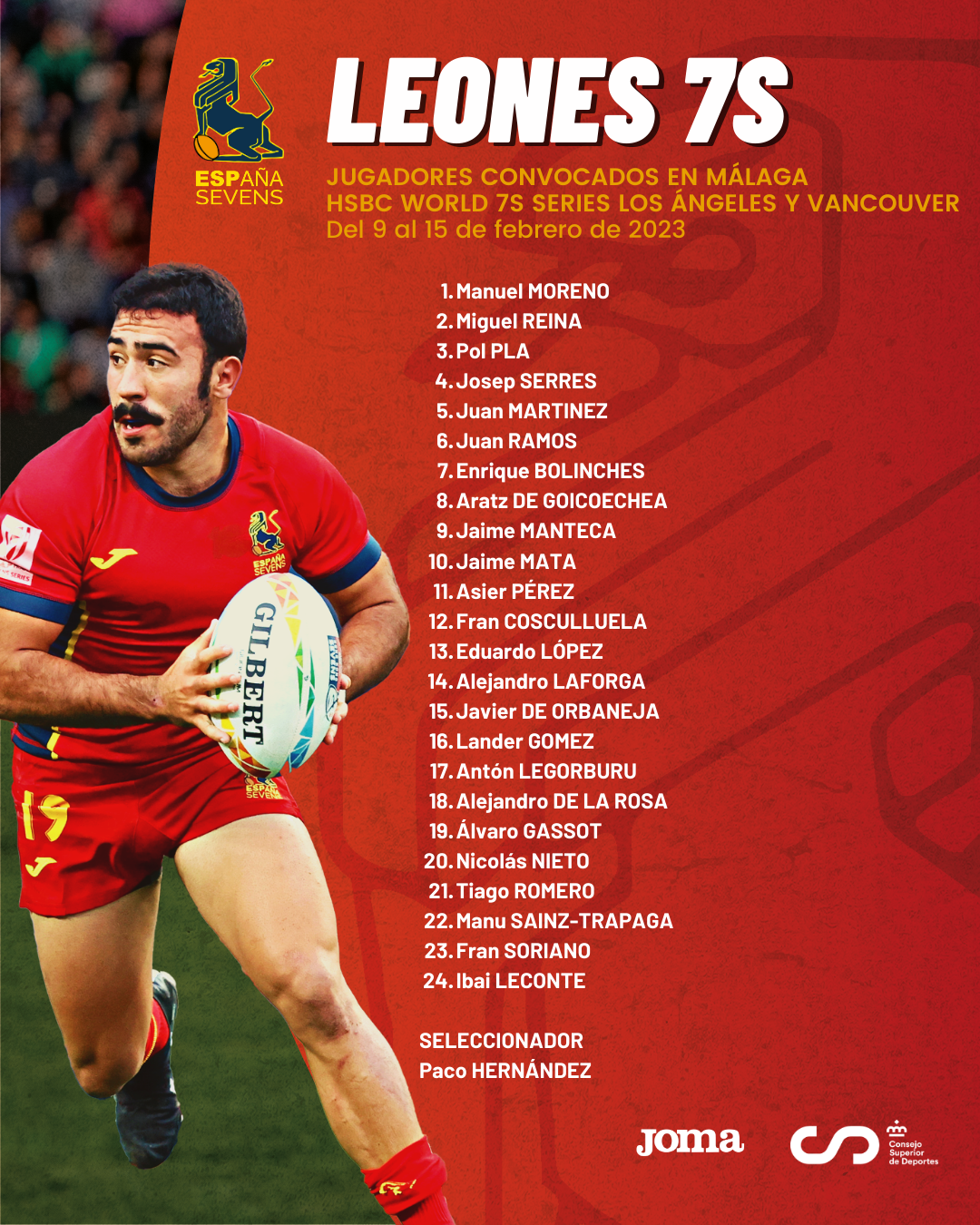Desde este jueves 9 de febrero y hasta el día 15 permanecerán convocados Los Leones 7s en Málaga de cara a preparar las siguientes citas de las HSBC World Rugby Seven Series de Estados Unidos (25 y 26 de febrero) y Canadá (3-5 de marzo). Para ello, el seleccionador Paco Hernández ha realizado una convocatoria de 24 Leones 7s que intentarán concluir con mejores sensaciones que las pasadas citas de Nueva Zelanda y Australia. En Hamilton (NZ), España concluyó en la posición número 13 y en Sidney (Aus) en la 14. Hernández introducirá su particular “revolución” tanto en la dinámica de preparar estas citas como en su cuerpo técnico.